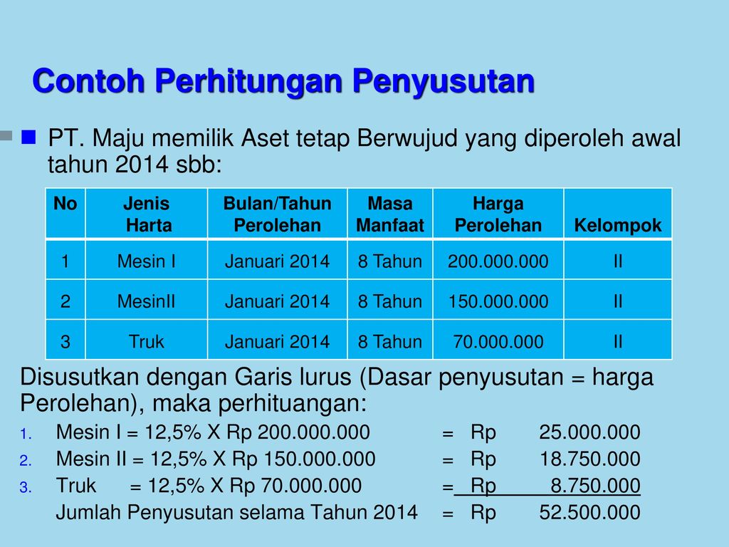 - Nilai Sisa: Nilai sisa adalah perkiraan nilai aset pada akhir umur manfaatnya. Nilai sisa dikurangkan dari biaya perolehan aset untuk menentukan dasar penyusutan.